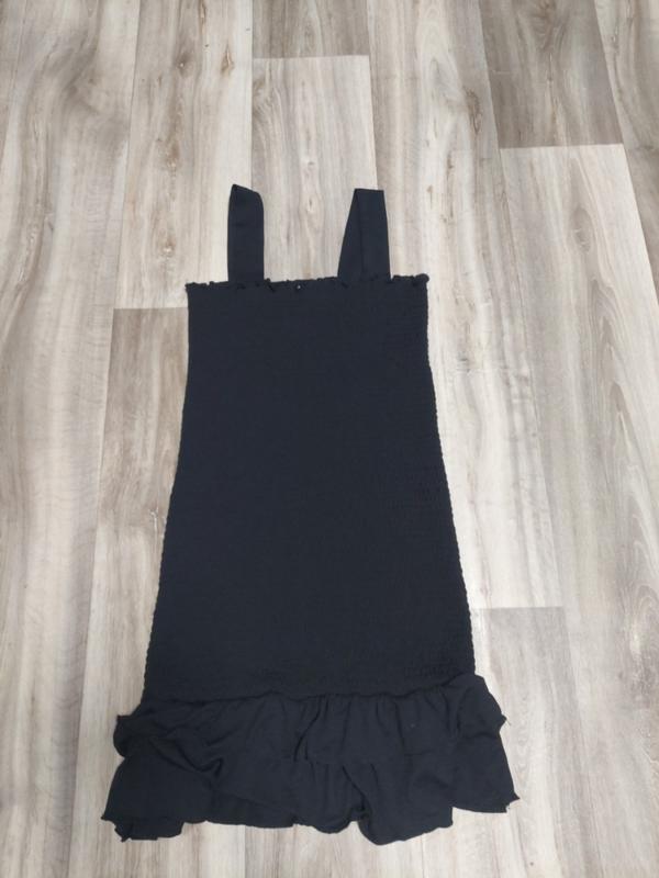 Летний сарафан с годами по низу, по всему телу резинка. Размер по бирке L. Замер ПОГ 37 см до 46. Бедра и талия так же. Длина 95 см.