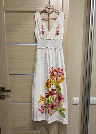Продам біленький сарафан на літо в чудовому стані Тканина натуральна, здається бавовна або віскоза Довжина 116 см В грудях від 40 до 48 В талії під грудьми від 25 до 45
