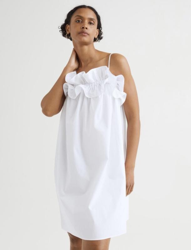 Ніжна біла сукня від H&M на бретелях із трендовими воланами по верхньому краю. Ідеальна для літа, легка й вільна, виглядає дуже жіночно та елегантно, розмір М💕