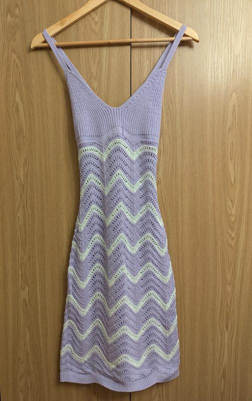 Вязаное летнее платье, Сядет по фигуре на XS-S, 100% котон длина от лифа 70см