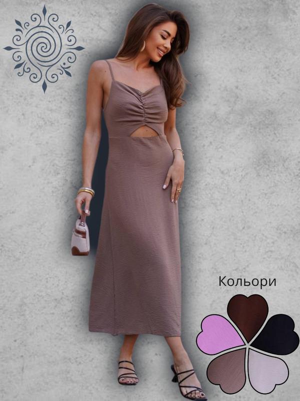 Сарафан игривого фасона для незабываемого лета❤️ •Модель: 060. • Размер: 42–44, 46-48. • Ткань: турецкая жатка. Кольори: - Черный - Барби - Шоколад - Бежевый - Мокко Легкая, воздушная ткань, бретели регулируются, на спинке молния. Есть замеры Есть видео обзор Перед оформлением заказа обязательно ознакомьтесь с разделом "Про меня" на странице магазина или уточняйте все детали в личных уведомлениях. Нажимайте кнопку "Подписаться", чтобы не пропустить новинки, выгодные акции и распродажи!