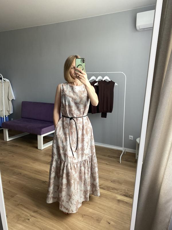 Літня довга сукня ☀️ Невагома Не парить, якісна тканина та пошиття. Позаду на горловині застібка-гудзик. Розміри S, M, L 🏷️ 2100 грн 40% віскоза 35% тенсел 15% льон 10% нейлон Заміри Довжина 127 см (+- 2 см) Пів обхват під проймою 46-49-52 см Пів обхват по талії 52-55-58 см