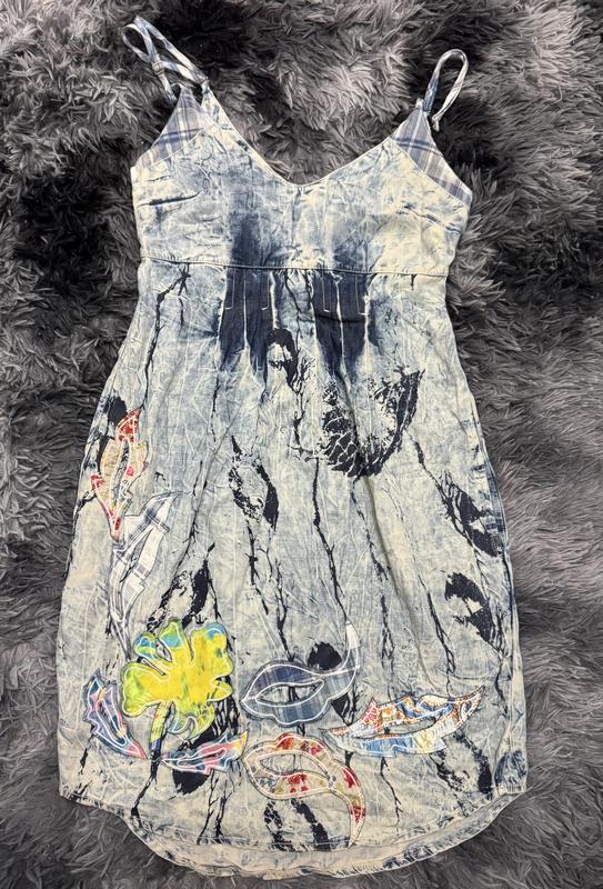 Новий стильний джинсовий сарафан на бретельках Дуже гарний в життя, джинс-котон варьонка, позаду на ґудзика, з переду малюнок/вишивка Є дефект, відірвані бретелі, легко усувається дефект, але в ціні врахувала Розмір М, але краще на Хс-С (40-42) Турція, гарна якість