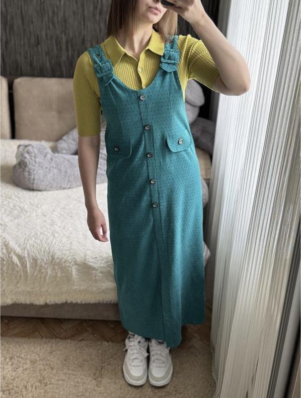 Сарафан в дрібний горошок, кишені обманки, застібається на блискавку Довжина 124(від плеч) Пог 40- 44см Поб 50-57см