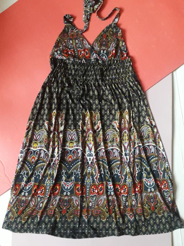Летний сарафанчик.Ткань масло.Под грудью резиночка немного свободна. Пог 37+ По под ком.40+ Пос 71+ Длина от подмышек 81. Нова,укрпошта.