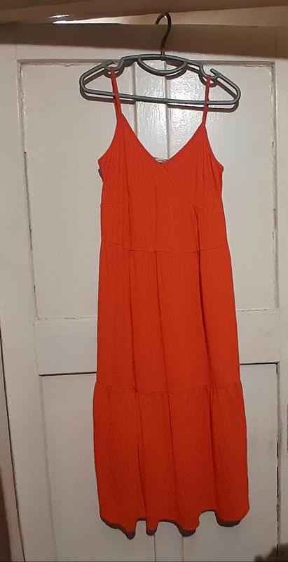 Нежно приятный на ощупь ярко-оранжевый сарафан на бретелях. Ткань мягушка i очень хорошо тянется.