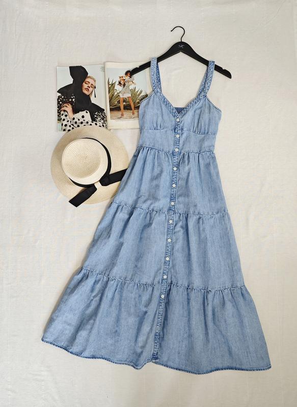 🌿джинсовый сарафан Levi факультет с резинкой на спинке, ткань 63% коттон, 37% конопля Размер:S Замеры:ПОГ 45 см, ПОТ 36 см, длина 130 см
