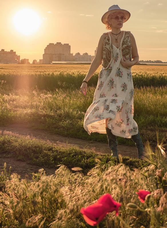 Сукня сарафан із натуральної легкої тканини, на підкладці розмір вказаний l, без нюансів