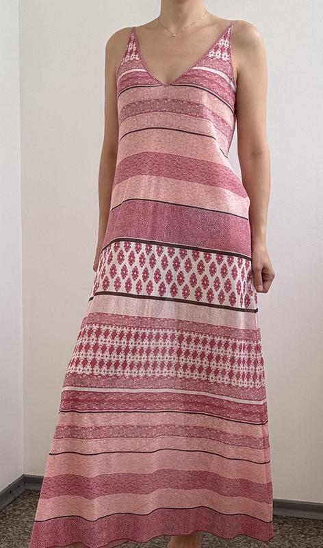 Довгий марафон зі 100% тонкої бавовни, підійде для відпочинку, пляжу, або одягати комбінацію під низ, трохи просвічує. По низу ззаду непомітний дефект (зашита дірочка), на останніх фото показала, в носці взагалі не помітно, в ціні враховано. Розмір 36 Довжина 135, пог 46, пот 48, стегна 55