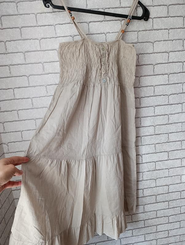 повністю натуральна бавовна тонесенька легесесенька , вільна модель , ідеально на хс с , на рост 160 за коліно , приємний колір світлий сіро бежевий
