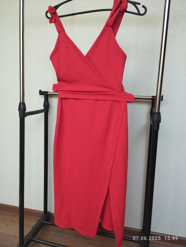 Шикарное сексуальное платье на запах с вырезом на левую ножку, с глубоким декольте, ог - 45+см, длина 110см. Размер М, кораллового цвета