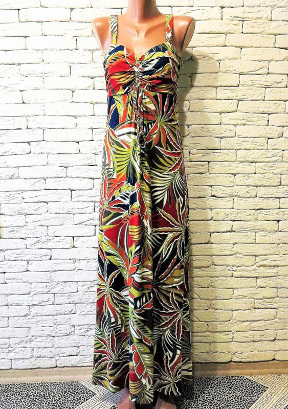 Платье отрезное по линии лифа, на широких бретелях. Замеры - ОГ 94-96 см (лиф присобран), под грудью до 86 см, длина 136 см, до 100 см Состав: 92% вискоза 8% эластан Доставка: ПІСЛЯПЛАТИ НЕМАЄ. Оплата на карту Приватбанка или Монобанку Открытка Новой почтой или Укр-почтой