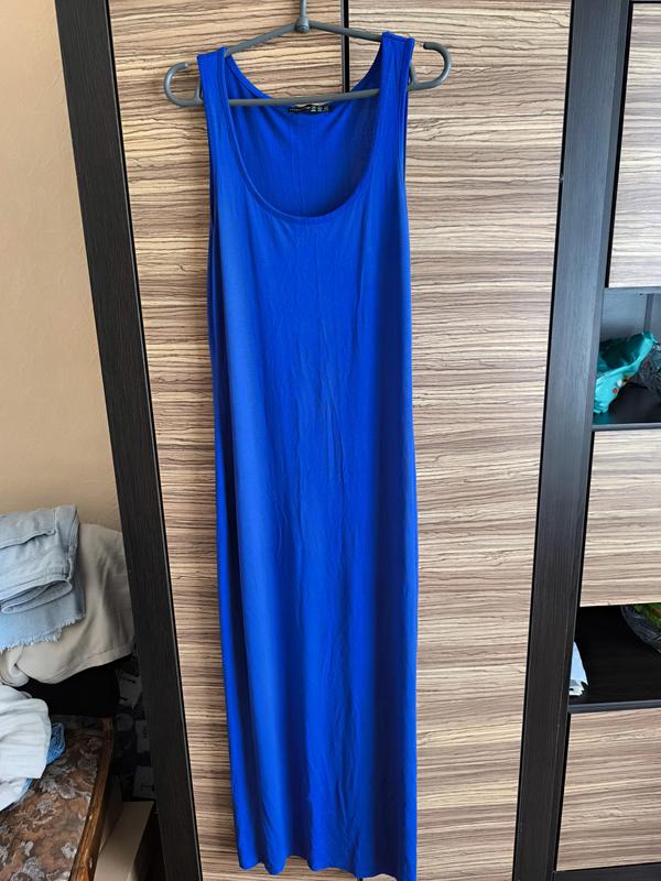 Платье майка в идеальном состоянии,цвет насыщенный синий.грудь по полуобью 45 бедра 50 длина 138, тянется.