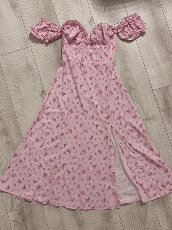 Дуже гарна легка літня сукня (сарафан з розрізом), в стані нової речі . Ззаду на блискавці, даже гарно сідає по фігурі,але не підійде під зовсім маленькі груди. Колір ніжно-рожевий
