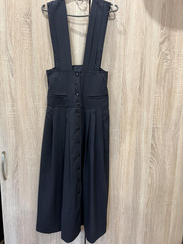 Довгий чорний зручний сарафан на кожен день , на ґудзиках, по боках імітація карманів. ПОГ 35, ПОТ 42,Довжина з бретельками 124, без бретельок 92.