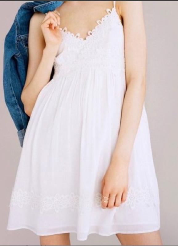 Белый сарафан с кружевом по низу и лифу. р.XS.по спинке застежка.грудь 48длина от бретель 84.