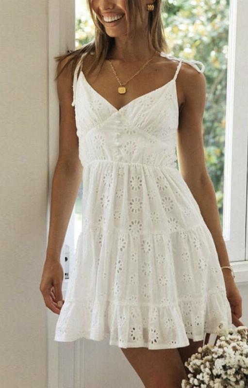 Платье сарафан Zara из прошвы, длина с бретельками, которые регулируются 81 см, ПОГ 45 см, но может потянуться, на спинке резинка, ПОТ 40 см, имеет короткую подкладку, одето на рост 165, вес 55 кг