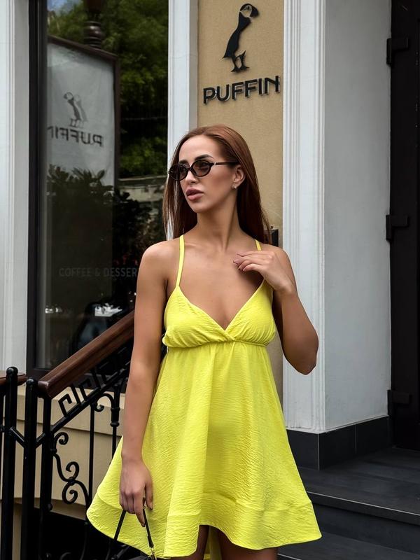 ✨Літо в кожному русі🥰 Сарафан💛 📸Фото Real ✅Модель 01 ✅Тканина: Американська креп жатка ✅Розміри: 42-44; 46-48; 50-52 ✅Кольори: лимон 🍋, білий, чорний 🔥 Хіт сезону вже тут! Літній сарафан, що сідає як друга шкіра. Пікантний виріз, спинка на зав’язках, вільний крій — усе, що треба для ефектного літа! Вибирай свій колір ❤️