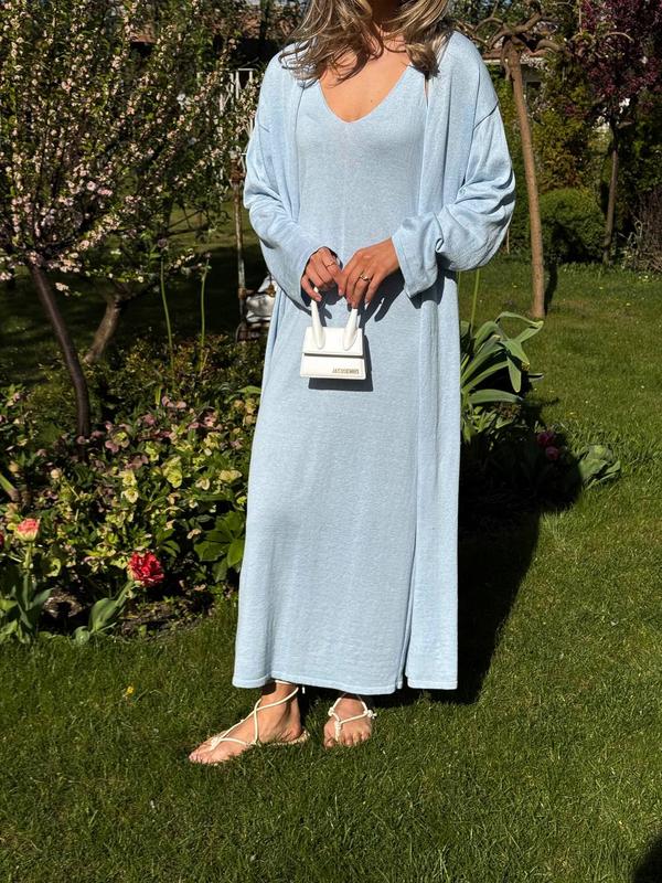 Женский комплект двойка сарафан с кардиганом длинный голубой хлопковый из хлопка