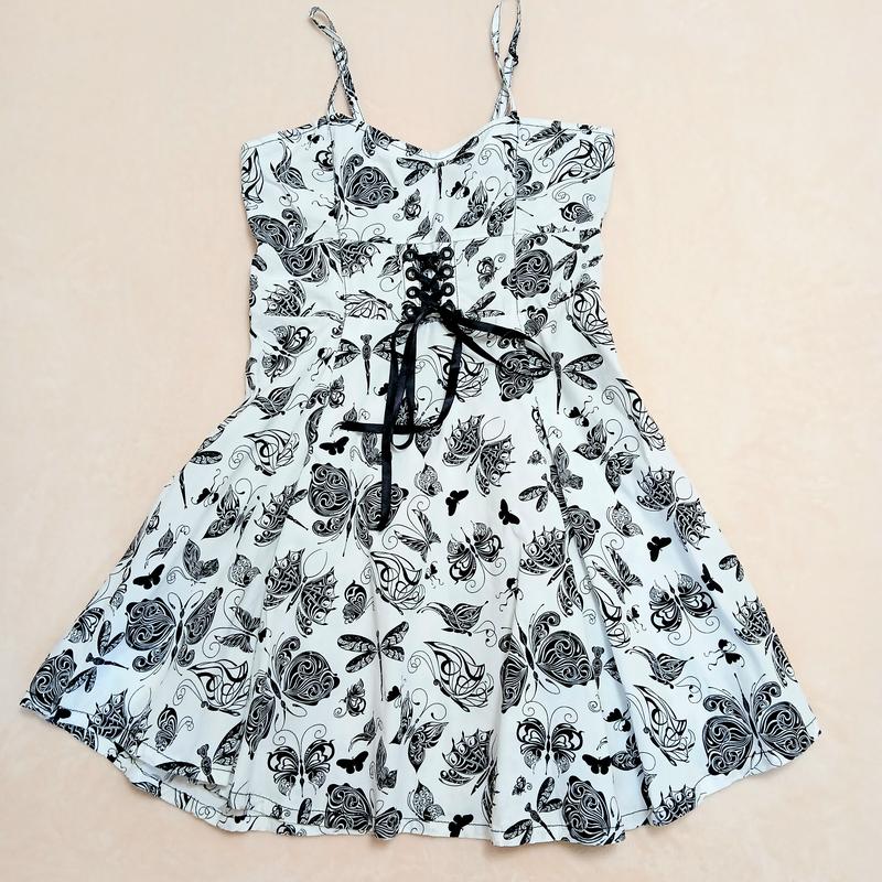 Летний сарафан с бабочками. Имеет корсетные завязочки на талии и широкую резинку на спине. Застегивается на замочек сбоку. Состав 100% хлопок Размер L