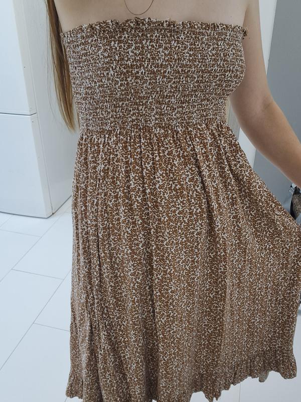 Очень красивый принт, легкий и стильный.Булы брители, но они отрезаны.Как на меня он и так смотрится отлично.На лето то что нужно.Чудово подойдет для беременных.Прекрасный образ для летних прогулок.Актуальный цвет.