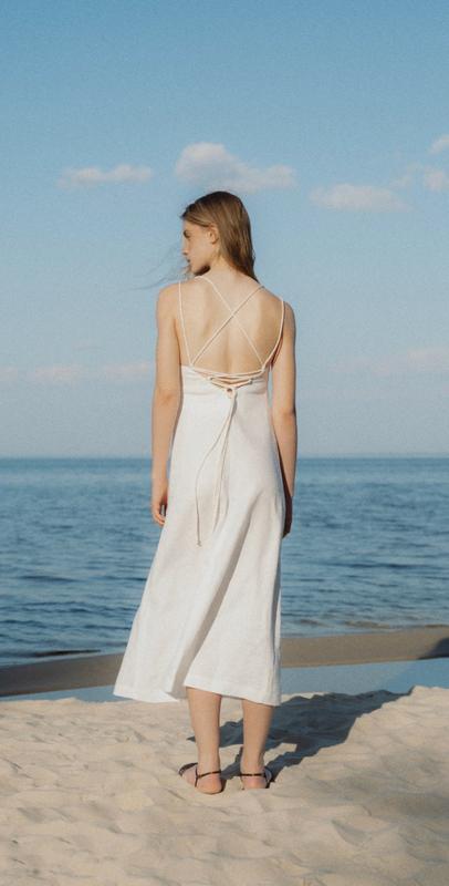 З біркою. Не підійшов по фасону. Український бренд TOTAL WHITE. Ціна на сайті — 7400 грн. Створений з натурального льону, він дозволяє тілу дихати навіть у найспекотніші дні. Відкрита спина, тонкі шнурівки й довжина міді. М’яко облягає фігуру. Довжина сарафана 130 см. На моделі розмір XS/S. Зріст моделі 183 см. Склад: 100% льон По розмірній таблиці: груди 84-88, талія 62-70, бедра 86-99 Регулюється на шворках, застібки немає. Злегка просвічує.