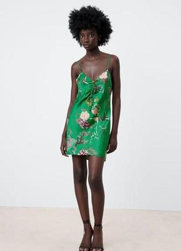 Сатиновое платье сарафан Zara зеленая в цветочный принт. Новая, сток, без бумажной этикетки. Размер М. Состав 100% вискоза. Очень легкое и приятное качество. ПОГ 49 см, ПОТ 48 см, ПОБ 56 см длина около 89 см ( шлейки регулируются). Крой по косой, поэтому платье тянется еще.