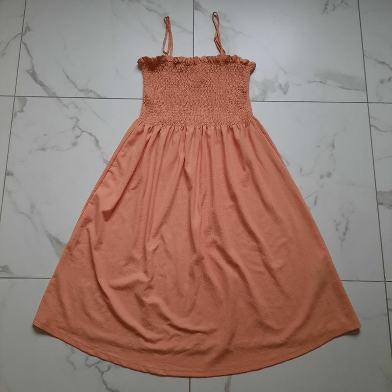 полуобъем груди 38см талия 40см бежевое свободное Длина платья 102см верх на резинках бретели регулируются