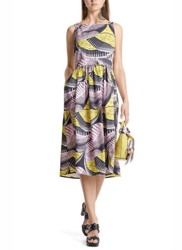 Платье Marc Cain миди Многоцветный рисунок Без рукавов Квадратный вырез С карманом Застежка сбоку - молния 100% хлопок 46 размер Длина изделия-125 ПОГ-48 ПОТ-40