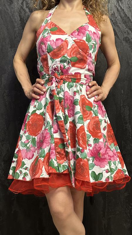Ідеальний стан. 100% бавовна. Яскраве і неповторне. Частину підкладки з фатіном можна відрізати. Підійде на XS-S Підмишки 40, талія 39, довжина по бічному шву від підмишки 67, по спині 70, довжина вказана без фатіна