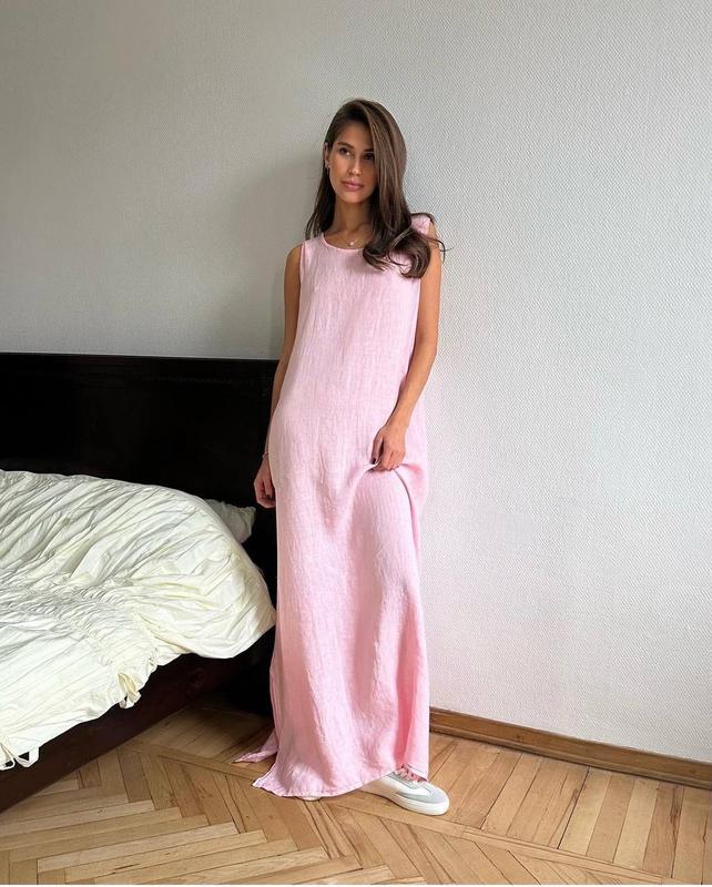 💫Супер трендовый сарафан из натуральной ткани Именно этот сарафан из натуральной ткани будет твоим лучшим другом в жаркую погоду☀️ Кольори: - Голубой 🩵 - Барби 🩶 - Белый 🤍 - Черный 🖤 ➡️Мод: 1401BestF ➡️Размеры: 42-44, 46-48 ➡️Тканина: льон (натуральна тканина, літом не парить) 🍹Длина 140см, присутствуют карманы по бокам.