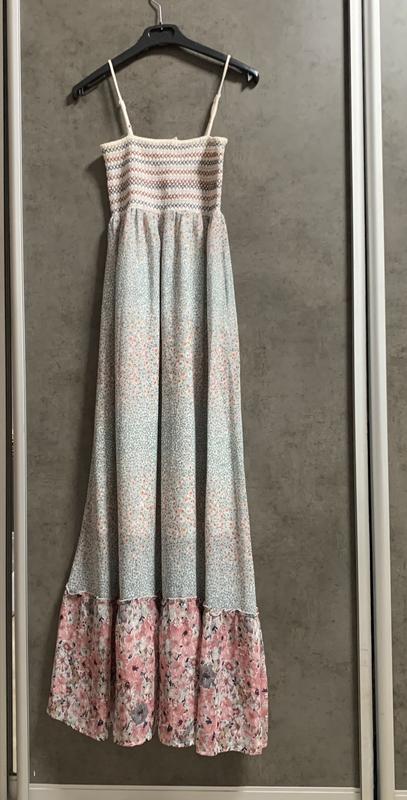 Довга сукня, сарафан Colin’s XS Верх ( ширина 28 см) бандо, щільний, прорезинений. На підкладці. Низ широкий. тканина не мнеться) Довжина 120 см На фото одягнена на фігуру S, трошки тисне, враховуйте це.