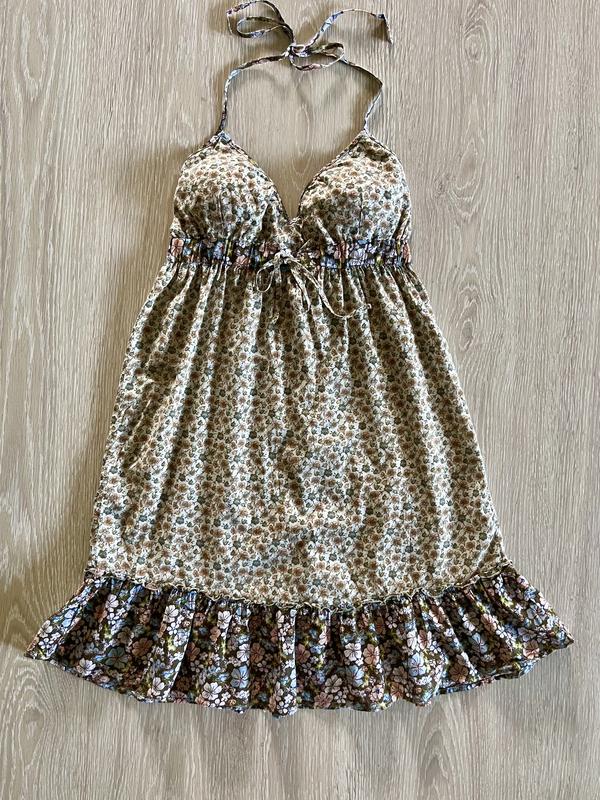 H&M чудовий сарафан. Тканина легка, котон. Розмір з бірки 6/36;165/84 А. Довжина без урахування брітель 75 см. Напів обхват грудей 33, тягнеться до 44 см (під грудьми резинка). Напів обхват стегон 57 см. Стан відмінний, сток.