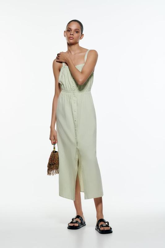 Льняной сарафан Zara Благородный мятный цвет Размер М Под лифром резинка, Замеры: Пог 54 см Резинка 31 см Поб 52 см Длина 126 см 52% лен 48% хлопок