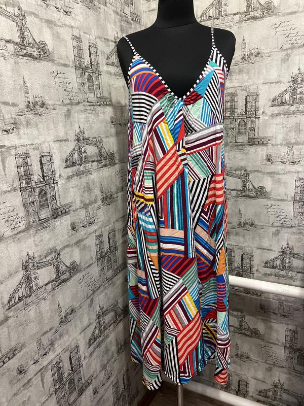 кольоровий сарафан яркий в полоску синій червоний зелений чорний