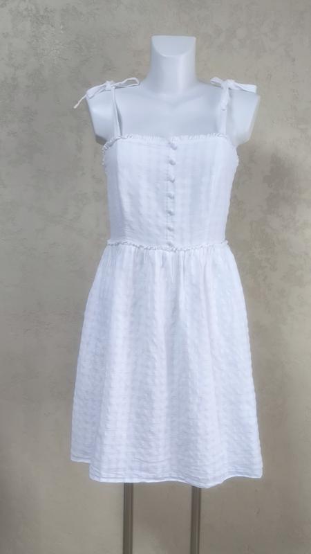 Платье Other storis с рукавами-завязками. Идеальное платье на лето, с эластичным собранным лифом, юбка миди в стиле скейтер хорошо сочетается с сандалиями, а также это платье прекрасно смотрится с джинсовой курткой и яркими аксессуарами. Завязки – это потрясающий элемент, который помогает обеспечить идеальную посадку. 💫 Размер: 42 💫Состояние: идеальный 💫ЗАМІРИ: 💫Состав: 100% хлопок