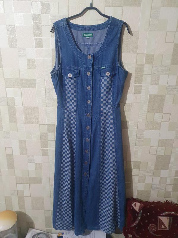 женский джинсовый сарафан батал 50-52р XL-2XL длинный на пуговицах спереди и сзади поясок тон кой. Дл 130 плеч 36 Ог 100 От 94 Ос 120. В идеальном состоянии.