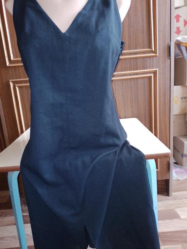 Платье льняное чёрное, впереди разрез 29 см, по бокам проймы вставочки ПОГ 51 ПОТ 46 ПОБ 51 Длина 105 см