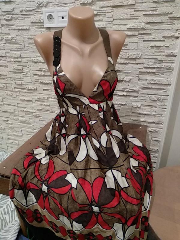 В идеальном состоянии, ткань лёгкая, идеально на море или на летний отдых, длина -103,под грудью-34,сзади за счёт резинки потянется до 37,далее пышная юбка ширина которой тянется до 70см