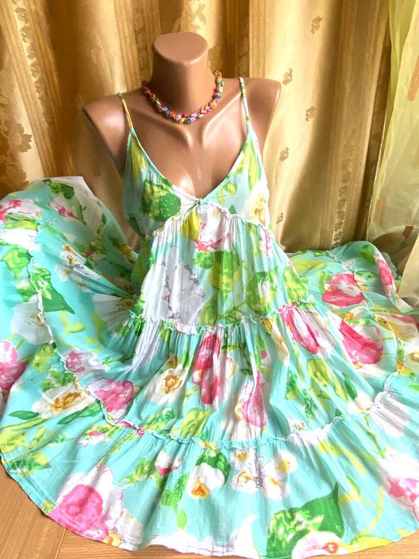 Дизайнерский сарафан 100% хлопок ярусный на тонких шлейках /debbie katz / сша.