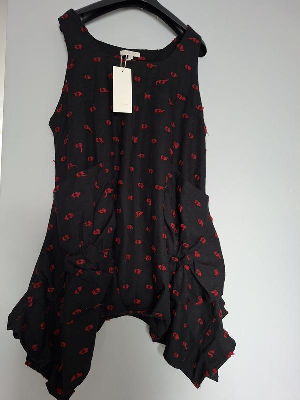 сарафан из плотной ткани (в виде шерсти) с двумя крупными накладными карманами. ПОГ 65 см длина 86 см ( спереди и сзади), 106 см (по обе стороны)