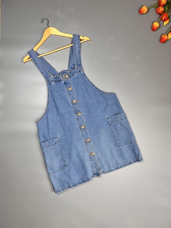Джинсовий сарафан з ґудзиками спереду ✅тканина щільна , не тягнеться ✅Стан - нової ✅Склад- 100% бавовна ✅Розмір - UK18 EU 46 ✅PEP&CO Заміри: ПІТ - 55 ПІБ - 64 Довжина - 90