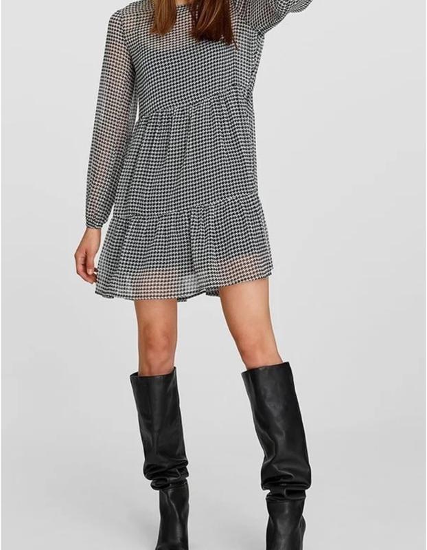 Елегантне чорне плаття-сарафан із під’юбником. Напівпрозора тканина в біло-чорно-сіру клітинку, довгі рукави, легке та жіночне. Сидить красиво, підкреслює фігуру, ідеальне для вечора, побачення чи прогулянки. 💫 Розмір: M 🤍 Стан: відмінний