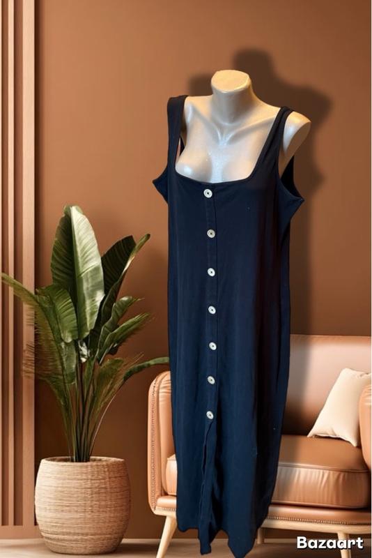 ПЛАТТЯ , СУКНЯ , на бретелях та ґудзиках Напівобʼєм грудей- 54 тягнеться Напівобʼєм талії-54 тягнеться Напівобʼєм стегон-67 тягнеться Довжина виробу-140 Сезон/ матеріал: утеплювач/ принт-, чорна гарна сукня. Особливості товару-ідеальний стан, Наявність дефектів- немає фото на тілі не робимо, похибки в замірах +- 1-2 см.