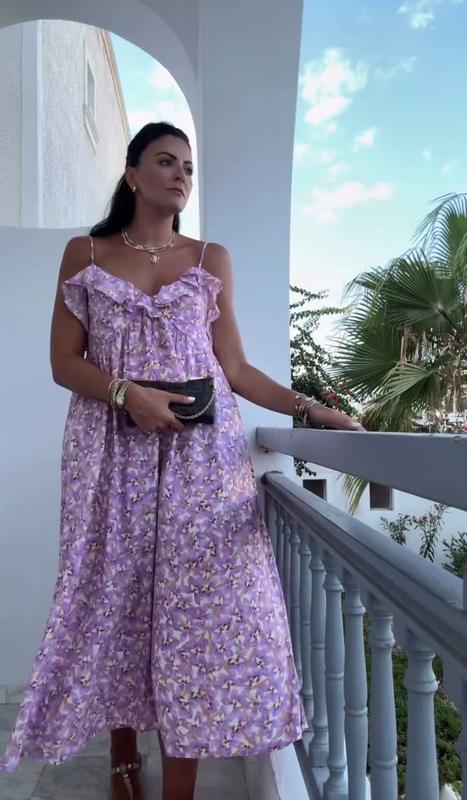 Невероятно красивый сарафан от Н&М. Очень красивая вещь. Легенька тканина. И необычайно нежный красивый цвет. Состояние, как новый. Платье из смеси вискозы с V-образным вырезом, обработанным воланами, и узкими регулируемыми бретелями. Собранный шов под бюстом и расклешенная юбка. Без подкладки. Размер М ПОГ - 45-52 (еластична резинка позаду) Под грудью 50 см ПОБ - 80см Длина - 125 см (можно регулировать бретелями). Состав 80% вискоза,20% полиэстер.
