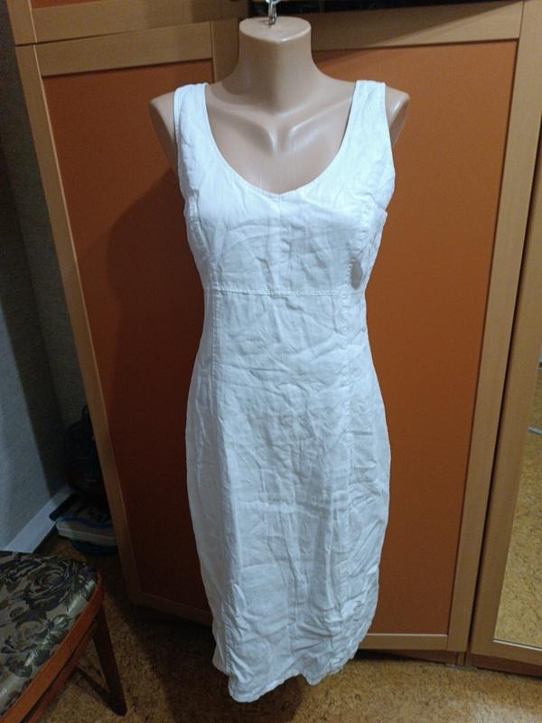 сарафан лен, колир мелкий, размир 38, замиры: длина 102, грудь 45, под груди 38, талия 43, бедра 51, из нутри коттоновый пидклад, сзади молния