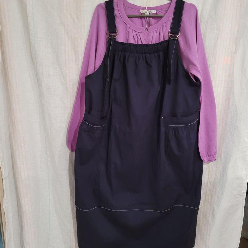 Плотный сарафан стрейч, ровного силуэта, спереди два кармана, вверху широкая резинка, лямки регулируются, темно-синий. Новый,без бумажной этикетки, люкс сток. Ог 138+, Об 150+, длина 112+-.