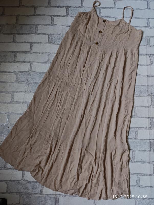 Свободное длинное бежевое платье на бретельках сарафан бохо primark