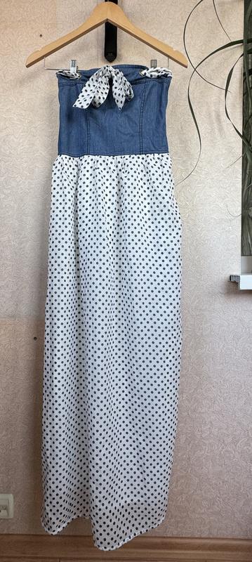 Довгий сарафан верх із джинса низ з принтом в горошок Гарної якості
