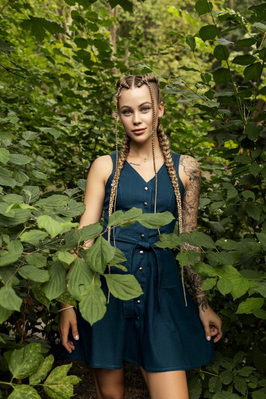 - Материал: лен; - Состав ткани: лен 80% + вискоза 20%; - Сарафан застегивается на кнопки, которые доходят до середины юбки; - Спереди V-образный вырез; - Два накладных кармана спереди; - В талии есть шлевки для пояса. Декоративный пояс в комплекте, в цвет сарафана. - Юбка имеет свободный крой. Мы работаем только с доставкой на Новую Пошту с послеплатой! Предоплат у нас нет!